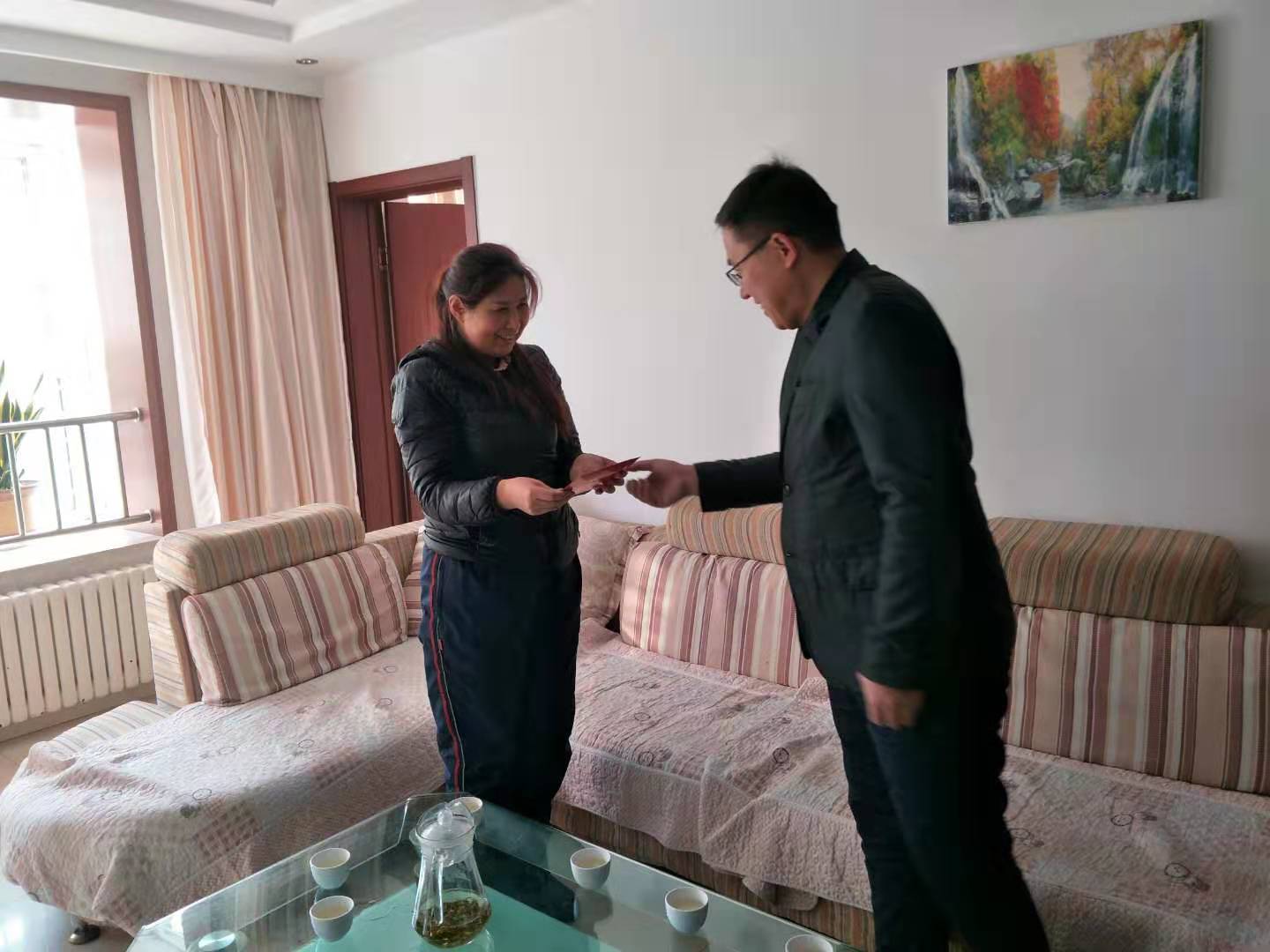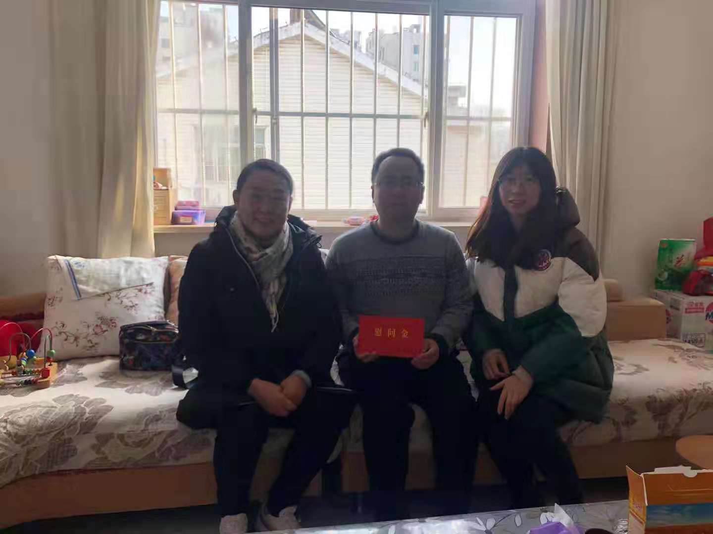 2020年新春即将到来,为使家庭困难的教职工过上一个欢乐祥和的新春佳节,1月20日,诸城教体局宋桂来副局长、刘冲科长、王瑞玉主任、王建副科长一行四人在我院工会王娟、杨倩倩二位老师陪同下,冒着严寒对我院困难教职工进行了慰问并发放了慰问金,将党和政府关怀和温暖送到了困难教职工的心坎上。困难教职工纷纷表示,感谢党和政府的关心和帮助,并将这份关怀化为工作的动力,继续为教育事业尽心出力。