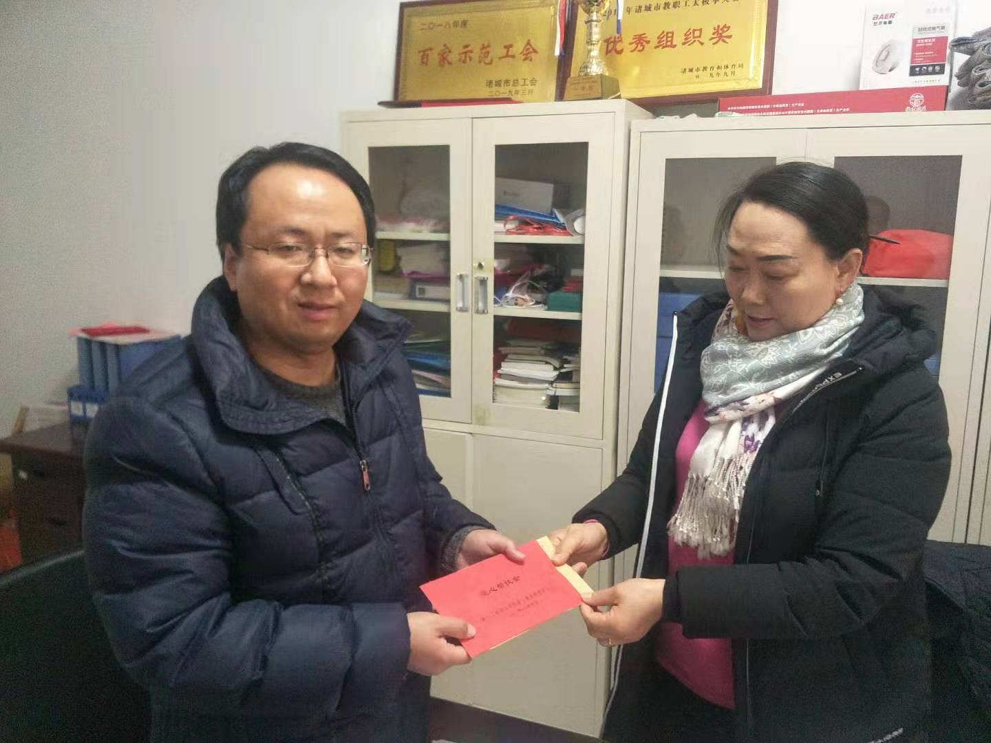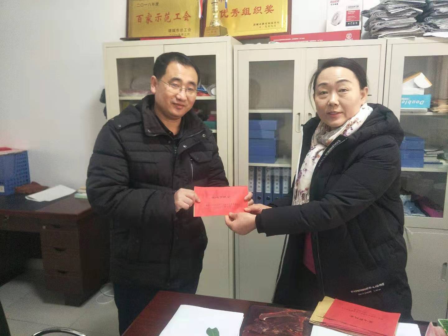 春节前开展的爱心帮扶活动是我院“送温暖”工程的重要活动之一,也是学院党委行政关注教职工困难、关爱困难家庭、不断提升教职工幸福指数,努力构建和谐温暖大家庭的重要体现,更是十九大精神落地生根的延伸和体现。1月10日下午,学院工会在图书信息中心工会办公室,王娟老师为我院15名困难教职工发放了帮扶款并向他们表示了亲切的问候,本次活动共为困难教职工发放爱心帮扶基金1.05万元。