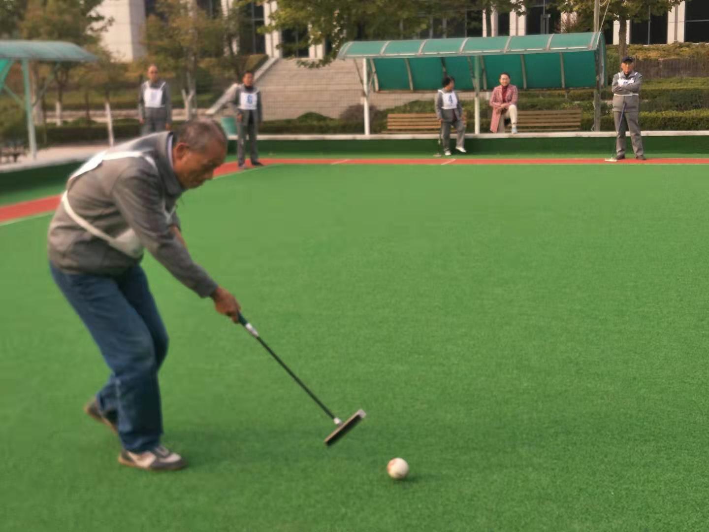 17日下午3:00,秋高气爽,天高云淡,灿烂的夕阳暖暖地洒在参赛队员的脸上,我院参赛队伍是本次联赛中平均年龄最大的一支队伍,选手都是一些精神矍铄、平均年龄74岁的老人,但他们个个热情高涨、精神饱满,比赛场上,手握重槌,气定神闲,挥杆对垒沉着冷静,弯腰击球身手矫健,不时迎来观众阵阵欢呼喝彩,充分展现了“夕阳红”的活力。经过努力拼搏,战胜了不少平均年龄小很多的队伍,取得了团体第四名的好成绩,荣获了“银奖”。一直在老年大学担任书法教员的刘云发老师参加了此次比赛并高兴地说:“门球运动不仅锻炼了身体,也让我交到了更多的好友。”