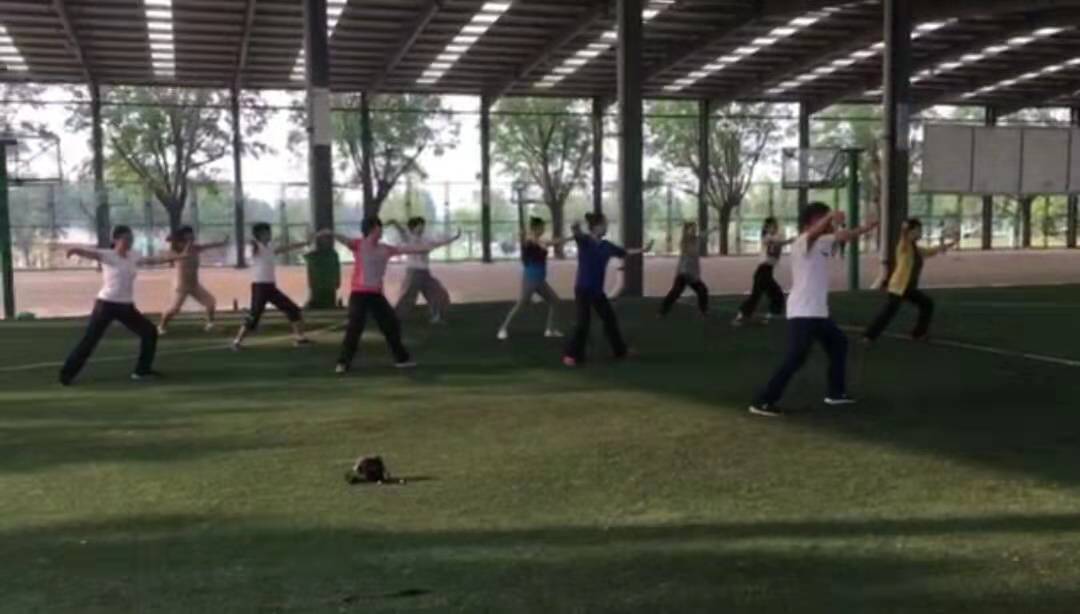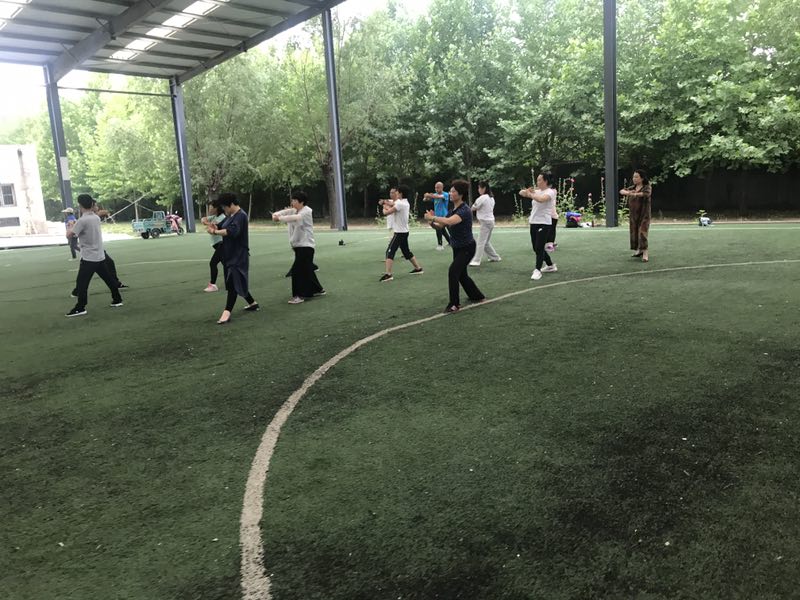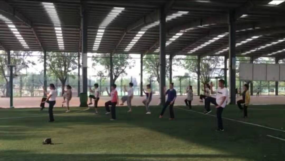 根据学院安排,我院将组织教职工参加个人项目太极拳、太极类器械比赛及太极拳集体项目比赛。学院于2019年6月18日发放通知后,爱好太极拳运动的教职员工踊跃报名参赛, 6月25日下午5点前报名人数已达18人,为便于组织联系,代表队专门成立的微信群,从6月26日起,在工会王娟老师牵头组织、太极拳协会张培生老师带领下,利用下午课外活动时间开始了集训。
