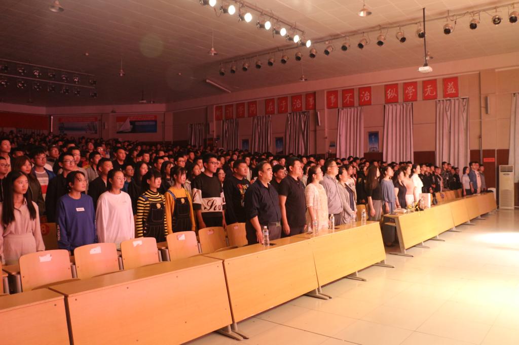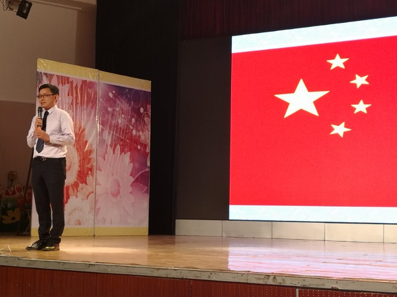 我院宋杰老师带领全场师生面向国旗行感恩礼并一起朗诵:感恩天地滋养万物,感恩祖国培养护佑;感恩党的英明领导,感恩父母养育之恩;感恩老师辛勤教导,感恩同学关心帮助;感恩农夫辛勤劳作,感恩大众信任支持。