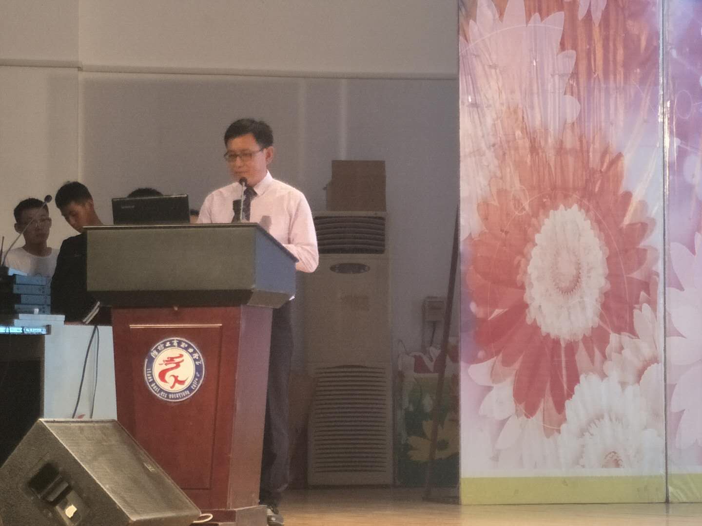 2018年9月19日晚上,由诸城市教育工会主办,我院承办的全市教育系统感恩文化主题宣讲活动潍坊工商职业学院专场在我院图书信息中心第一报告厅隆重举行。潍坊工商职业学院党委郑志松书记、诸城市教育工会马永芳主任、王树华副主任、潍坊工商职业学院工会陶炳勇主席、工会及学生处相关人员、大一新生辅导员及800余名大一新生参加了此次宣讲活动。来自全市教育系统感恩文化宣讲团的的六位优秀教师为我院大一新生奉献了一场精彩感人的视听盛宴。本次活动由学院工会谢瑞凤主任主持。